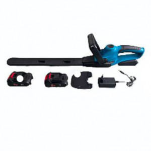 - A csomagban van két darab 36 V Li-ion akkumulátor, egy hálózati adapter, a készülék, és egy védőburkolat a pengéknek.