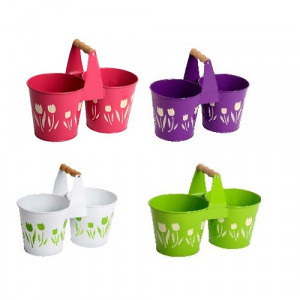 Fém ovál dupla kaspó tulipán színes 24,5