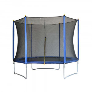 A dupla "U profilú" lábak tökéletes stabilitást nyújtanak használat közben. Az ugráló felület polipropilén szövetből készül, ellenáll az UV sugárzásnak és vízálló is egyben. A maximális biztonságot a PVC rugótakaró biztosítja, amely teljes egészében befedi a rugókat.