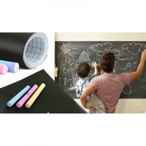 Az öntapadós táblamatrica praktikus és kreatív termék, minden korosztály számára tökéletes. A termék öntapadós, így könnyen felhelyezhető falfelületre, szekrényre, vagy bármilyen más, sima felületre. Ezen kívül pedig a tekercs hátoldalán található jelölések segítségével akkora méretre vághatod, amekkorára szeretnéd. A fekete tábla felületre krétával lehet írni vagy rajzolni, de szivaccsal vagy ronggyal ezek bármikor letörölhetőek és újraírhatóak. A gyerekek rajztáblának, a felnőttek személyes üzenetek, emlékeztetők írására használhatják.